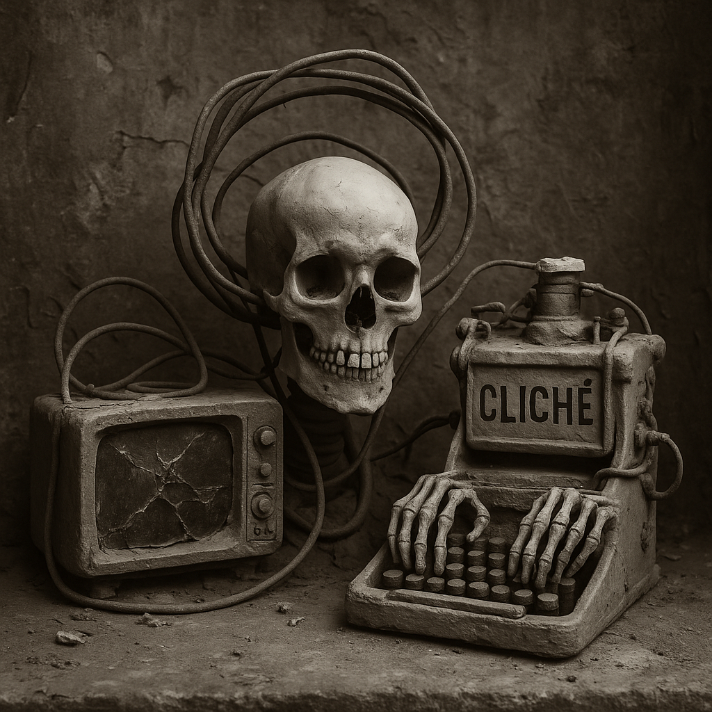 - Les clichés temporels, où passé et futur s’embrassent grotesquement, tels des squelettes en tutu.