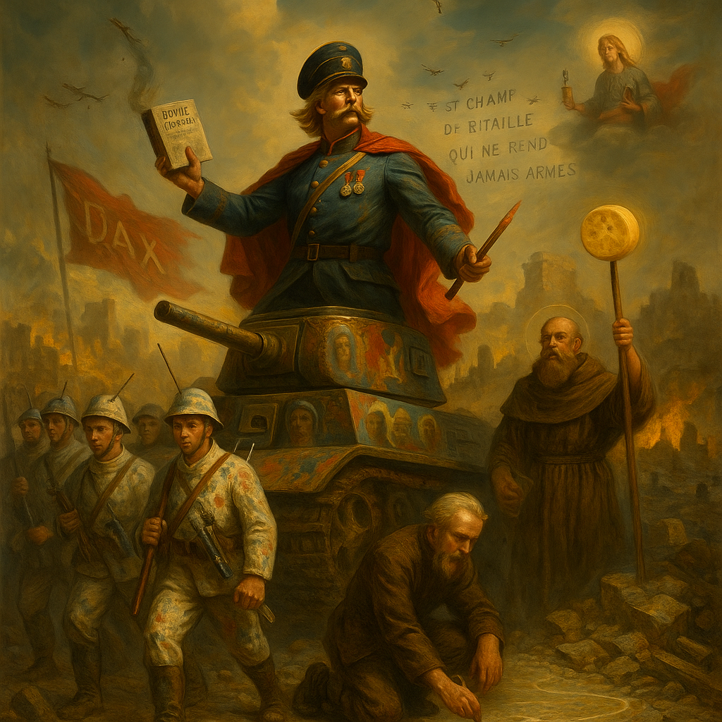 On y lisait des méditations sur le poids du képi, des études comparatives entre la baïonnette et le pinceau, et même une “Rubrique des Blessures Métaphysiques”.