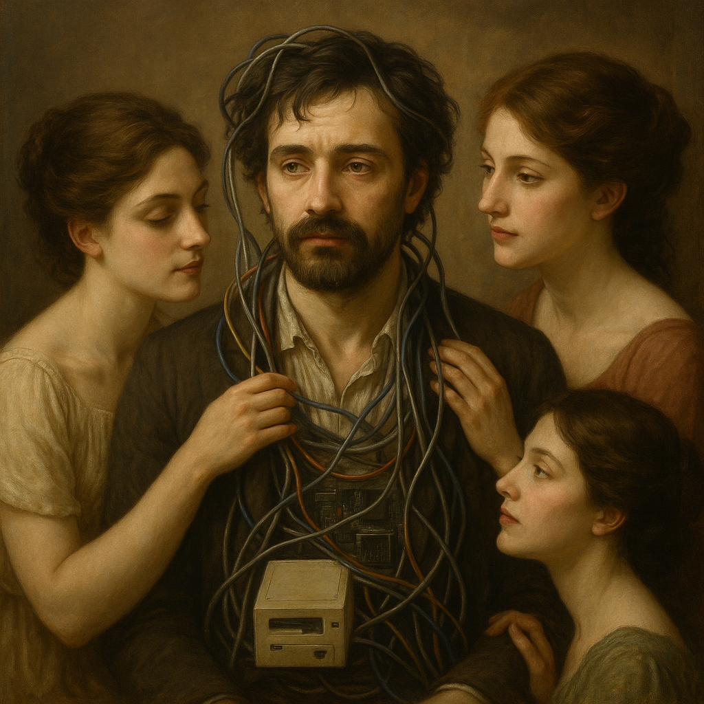 Les femmes l’aimaient parce qu’il embrassait avec lenteur dialectique, parce qu’il murmurait à l’oreille des modems désuets, parce qu’il leur montrait que même un cœur pouvait tomber en panne, et que c’était sublime.