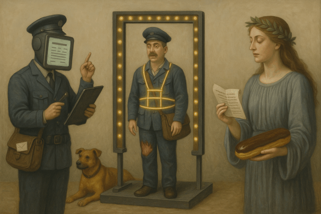 Elles compatissent : Vanexa, noble bête, ne fit que défendre l’i-machination domestique contre l’intrusion d’un messager obsolète du réel. Qu’est-ce qu’un facteur, sinon l’ultime vestige d’un monde pré-numérique ? Et Vanexa, en véritable chienne du futur antérieur, aura simplement refusé cette régression.