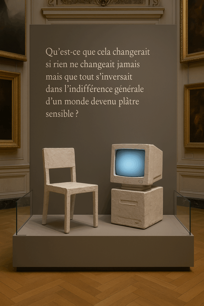 “Qu’est-ce que cela changerait si rien ne changeait jamais, mais que tout s’inversait dans l’indifférence générale d’un monde devenu plâtre sensible ?”