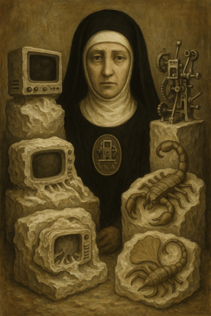 Et, ricanant d’elles-mêmes, elles concluent : « Nous sommes les saintes patronnes de l’inutile, les bonnes sœurs de la panne, les vestales de l’anachronisme. Si vous cherchez du sens, allez voir ailleurs : nous n’offrons que des catacombes pleines de plâtre et de fils électriques emmêlés. »