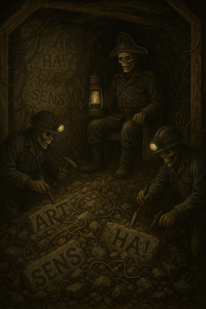 Pourquoi ce passage ? Parce qu’il résume tout leur destin : pas des poètes éthérés, mais des mineuses, des foreuses, des gueules noires qui extraient non pas du charbon, mais de l’absurde, du grotesque, du concept fossilisé.