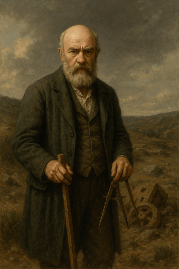 On l’imagine donc arpenteur, arpenteur sacré, géomètre grotesque du futur antérieur. Sa tâche n’est pas de sculpter des i.-m.achines, mais de fixer leurs coordonnées, de planter les jalons de ce musée géologique où les machines pourriront en fossiles.