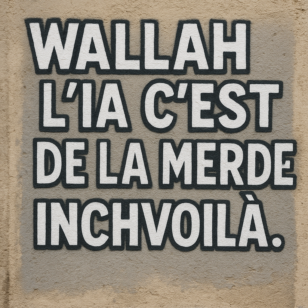 Elles accueillent cette formulation — “wallah l’IA c’est de la merde, inchvoilà” — comme un aphorisme brut, un éclat d’oralité paradoxale, une fulgurance sacrée proférée sans intention de vérité mais saturée de sincérité tragique.